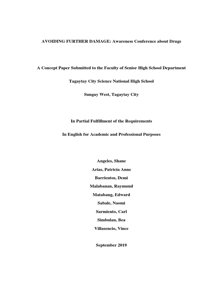 Use language that is definite. You need to back up your passion for the topic under research with solid literature that supports the topic, for example, literature that supports. Writing a concept paper goes beyond having an idea of what it is, given that this is a document that you will be presenting to a number of intellects. If templates or formats are not provided, the following can serve as a useful concept paper outcomes that, collectively, will help the applicant measure progress toward accomplishing the project goal(s). English for academic and professional purposes, reader first edition 2016 department of education republic of the philippines 3.